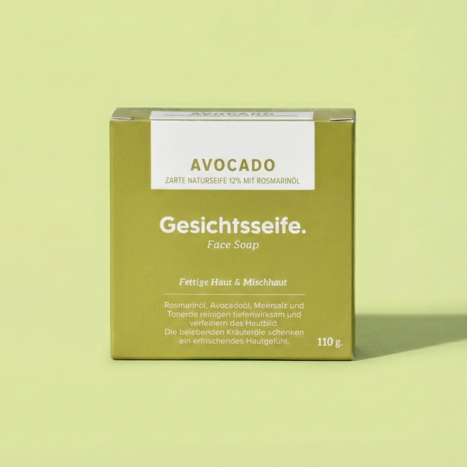 Die Avocado Gesichtsseife mit 12 % Rückfettung wurde speziell für fettige, unreine und gemischte Haut entwickelt. Sie reinigt porentief, entfernt überschüssigen Talg und Unreinheiten zuverlässig – ohne die Haut auszutrocknen. Klärende ätherische Öle, mineralstoffreiches Meersalz und Tonerde sorgen für ein frisches, mattiertes und ausgeglichenes Hautbild.