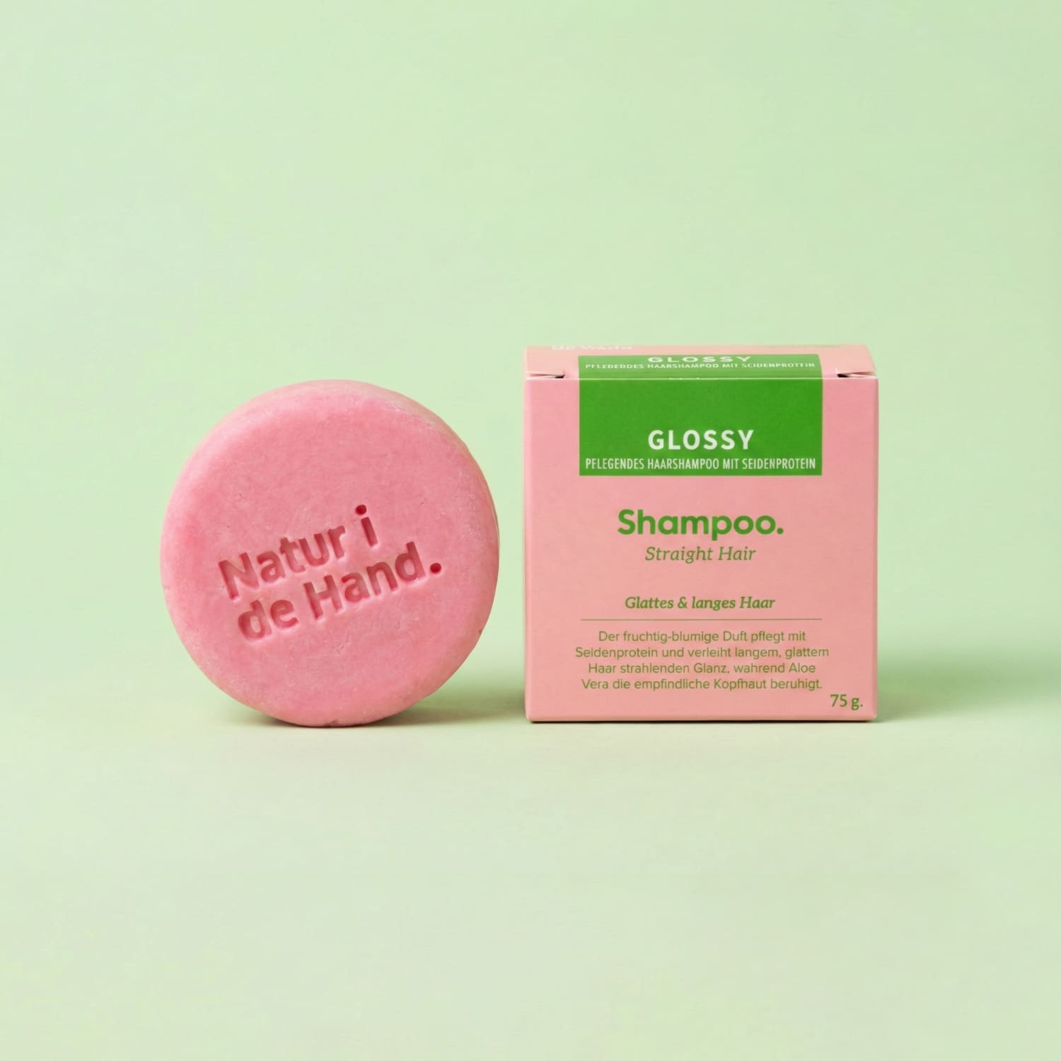 Glänzend, geschmeidig und gepflegt bis in die Spitzen: Die Glossy Shampoo Bar wurde speziell für langes, glattes oder strukturglattes Haar entwickelt. Sheabutter, Brokkolisamenöl und feuchtigkeitsspendende Pflanzenwirkstoffe glätten die Haaroberfläche, reduzieren Frizz und verleihen natürlichen Glanz – ganz ohne zu beschweren. Der fruchtig-blumige Duft macht jede Haarwäsche zum Verwöhnmoment.