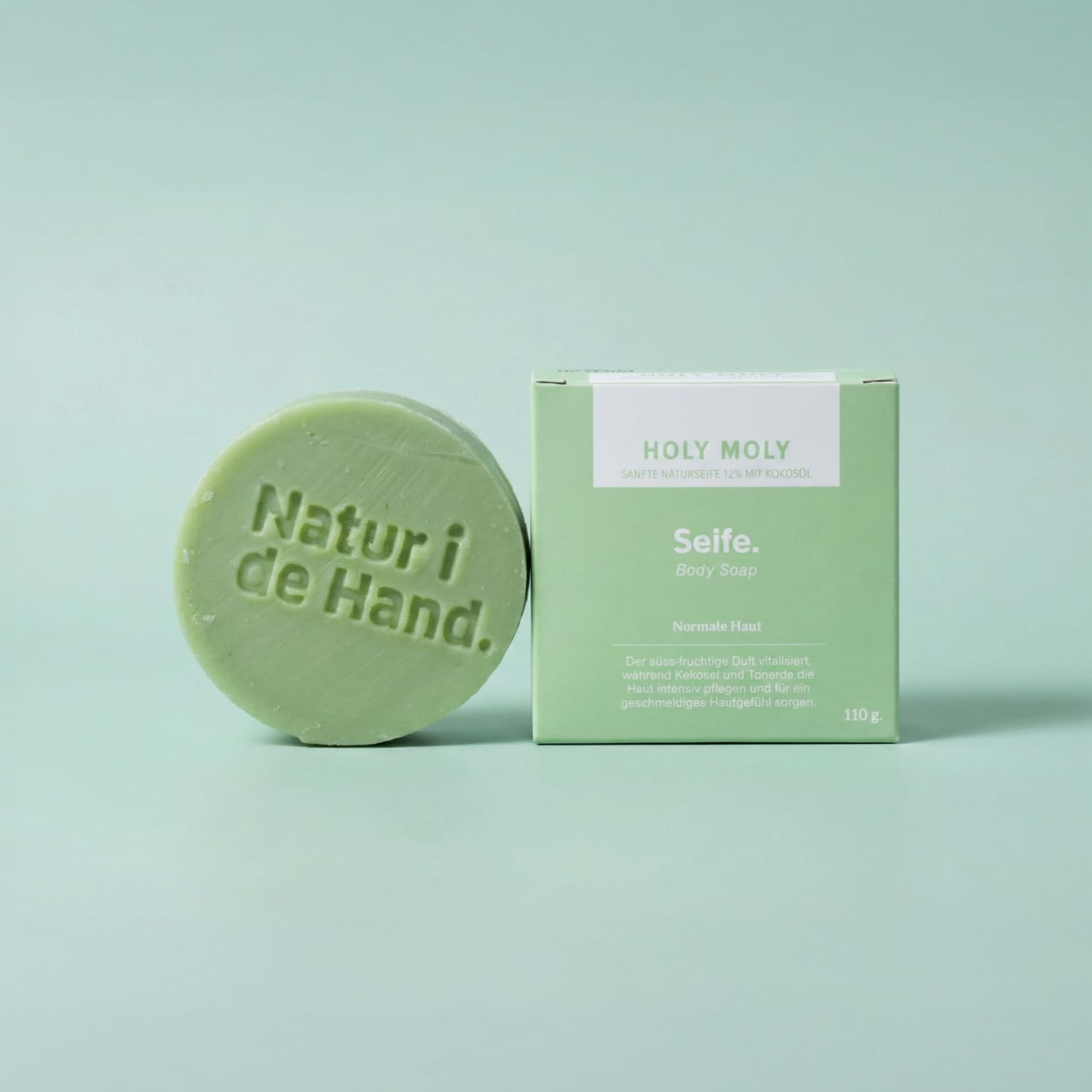 Fruchtig, sanft und wohltuend: Die Holy Moly Seife mit 12 % Rückfettung bringt gute Laune ins Badezimmer. Der süss-fruchtige Duft trifft auf pflegende Pflanzenöle und Tonerde, die deine Haut gründlich reinigen und angenehm geschmeidig halten. Ideal für die tägliche Pflege normaler Haut.