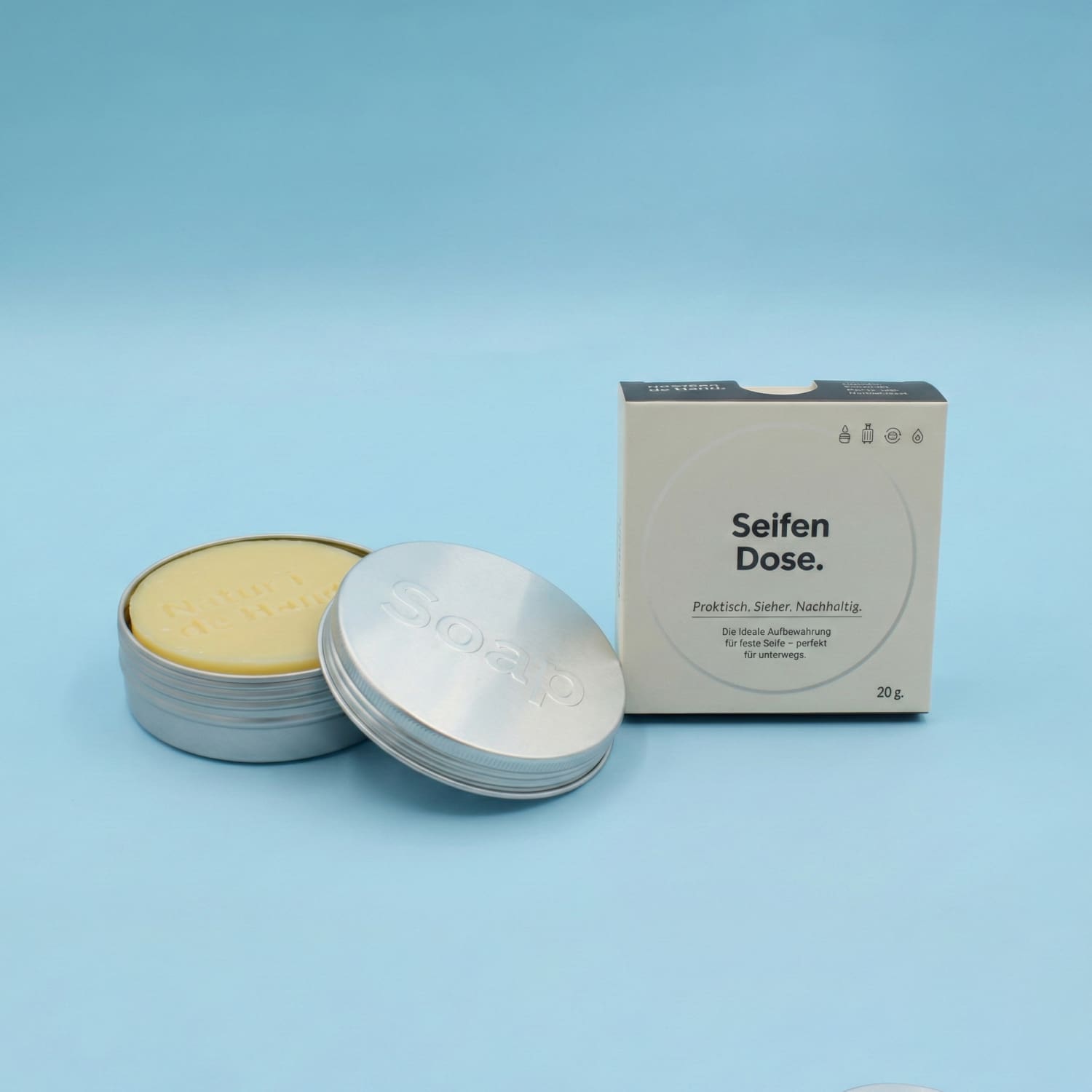 Unsere verschraubbare Seifendose aus Aluminium ist der ideale Begleiter für unterwegs und zuhause. Sie schützt deine Seife zuverlässig, ist hygienisch, langlebig und passt perfekt in jede Tasche.